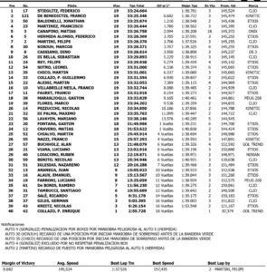 Martini sentenció a su favor el triunfo, Stieglitz culminó segundo y De Benedictis completó el podio. Luego finalizaron Baldinelli, González, Martínez, Canapino, Marcos Konjuh, Hermida y Dino Cassiano.